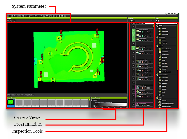 使用3D图像处理和3D检测工具评估和测量点云。3D工具都已经图形化处理,用户可通过拖拉操作创建3D检测程序。
