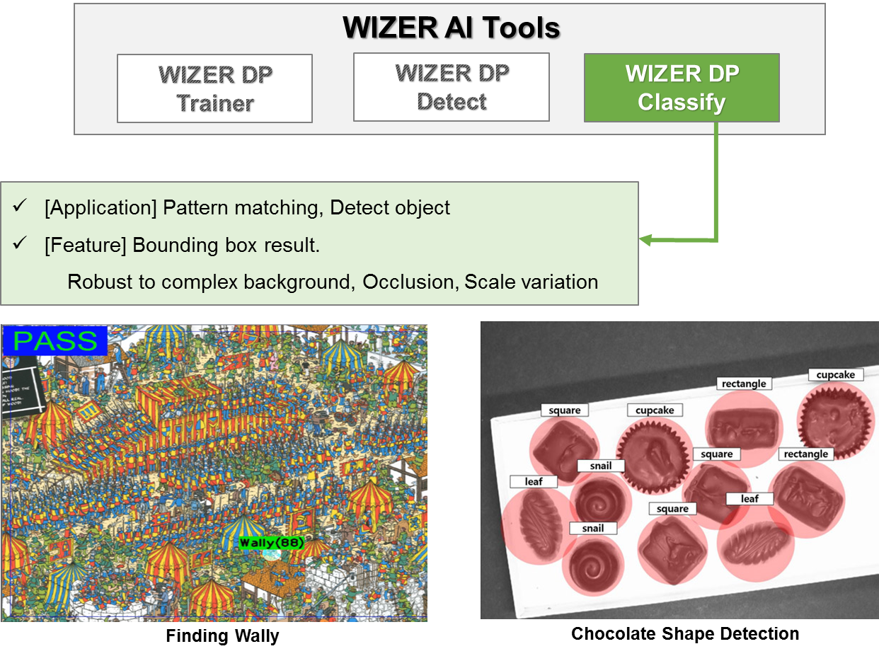 WIZER DP分类模块,用于分类缺陷类型。对复杂背景、遮挡、比例变化等具有鲁棒性。